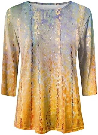 Women Summer Tops Floral Print Pattern Casual T-Shirts 3/4 Sleeve Crewneck Shirts Pullover Loose T-Shirt